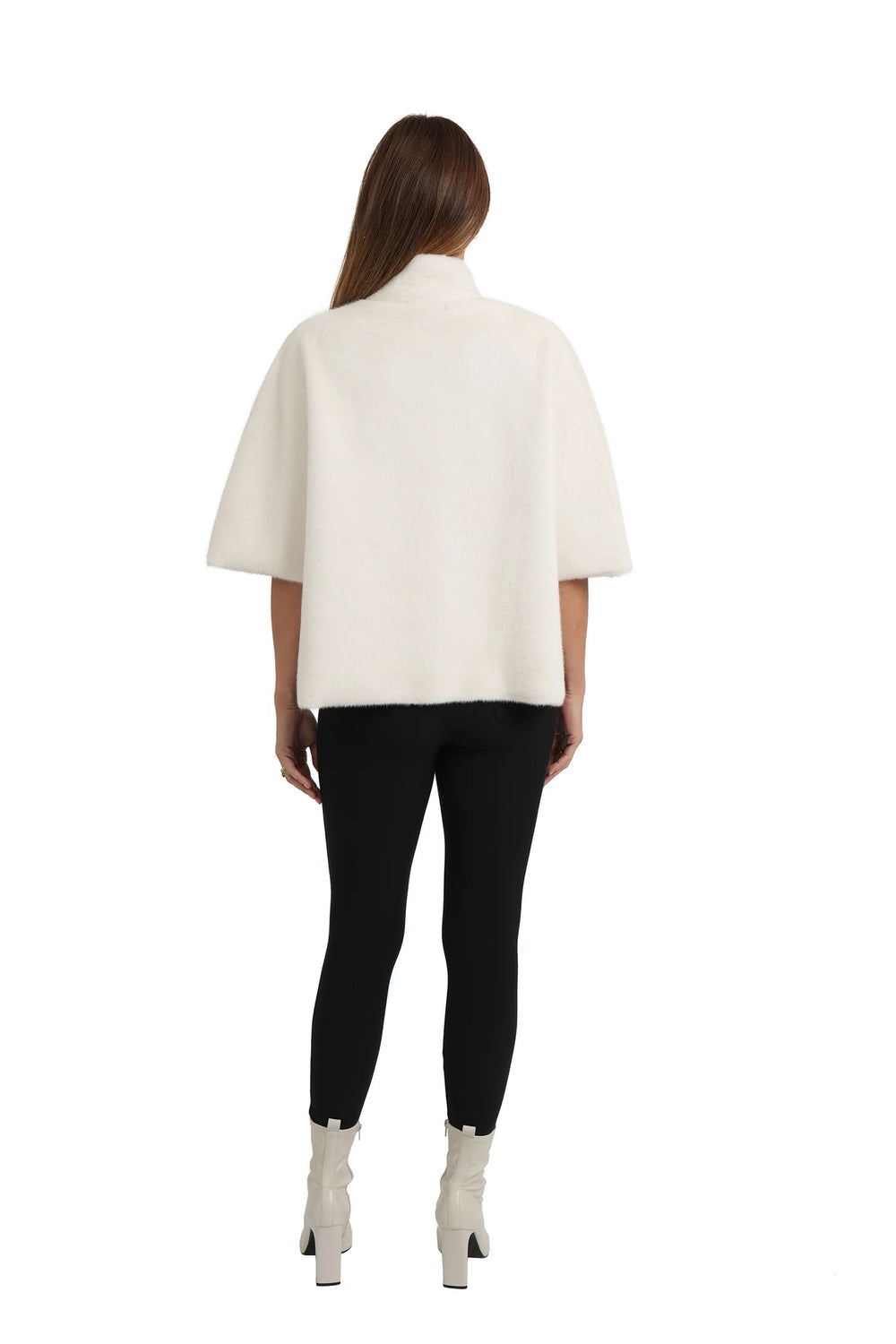 Ivory faux fur coat. Quarter sleeves. Dry clean only. 100% polyester